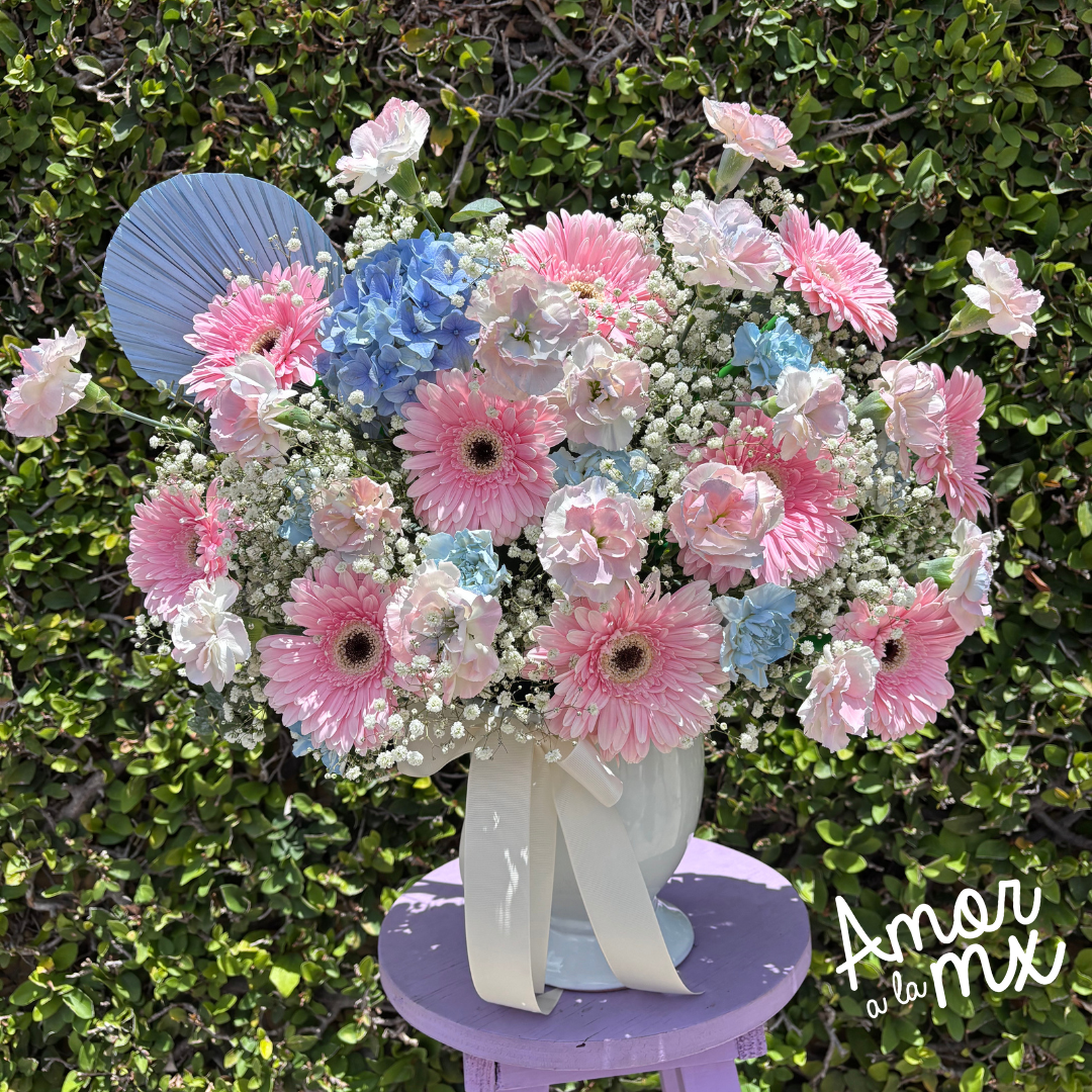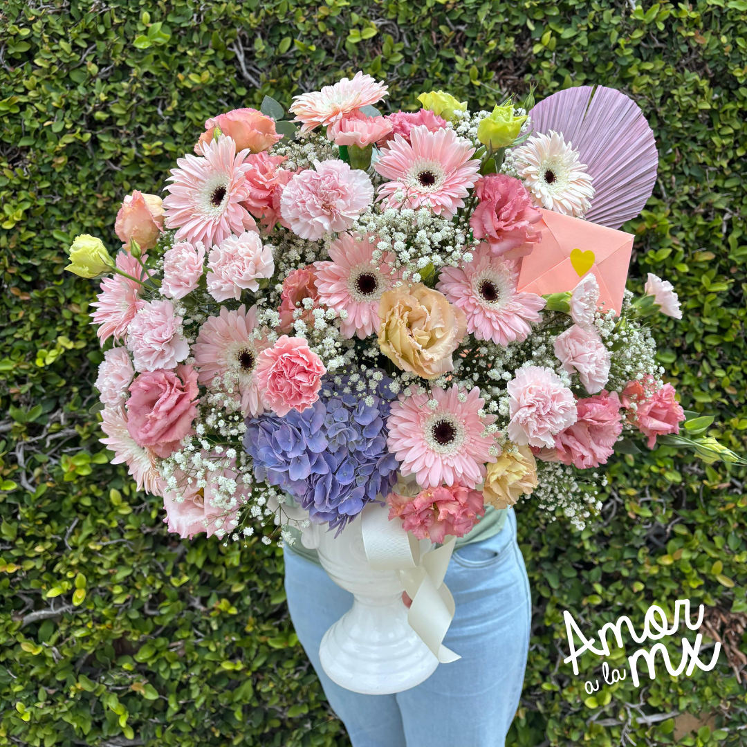 Arreglo en base de cerámica de flores variadas
