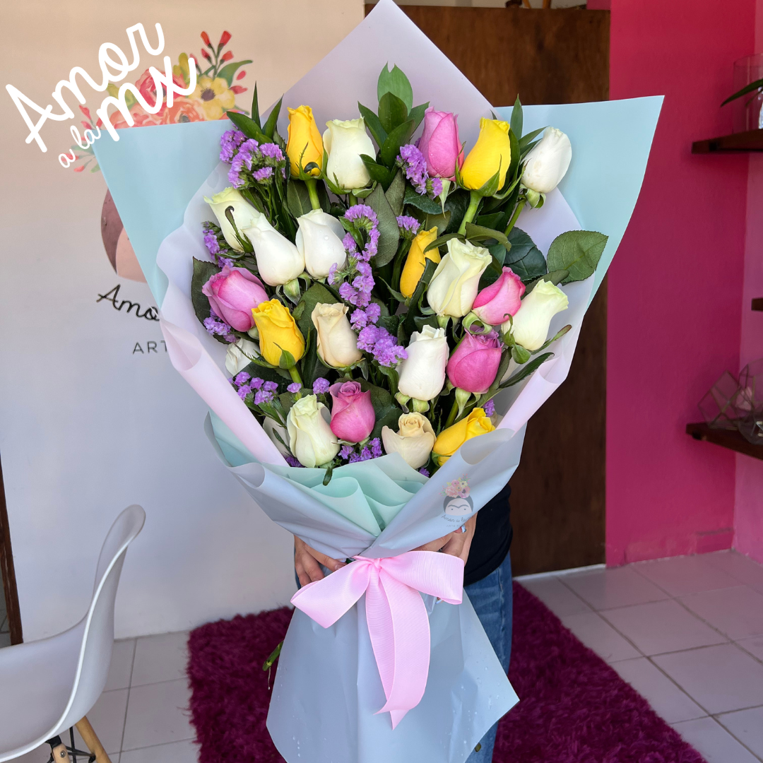 Es importante que sepas que nuestras imágenes son de referencia, sin embargo debido a que trabajamos con flores naturales y disponibilidad de nuestros proveedores es posible que las flores de acompañamiento puedan variar un poco. Pero no te preocupes en amor a la MX buscaremos siempre la mejor combinación para tu arreglo floral.