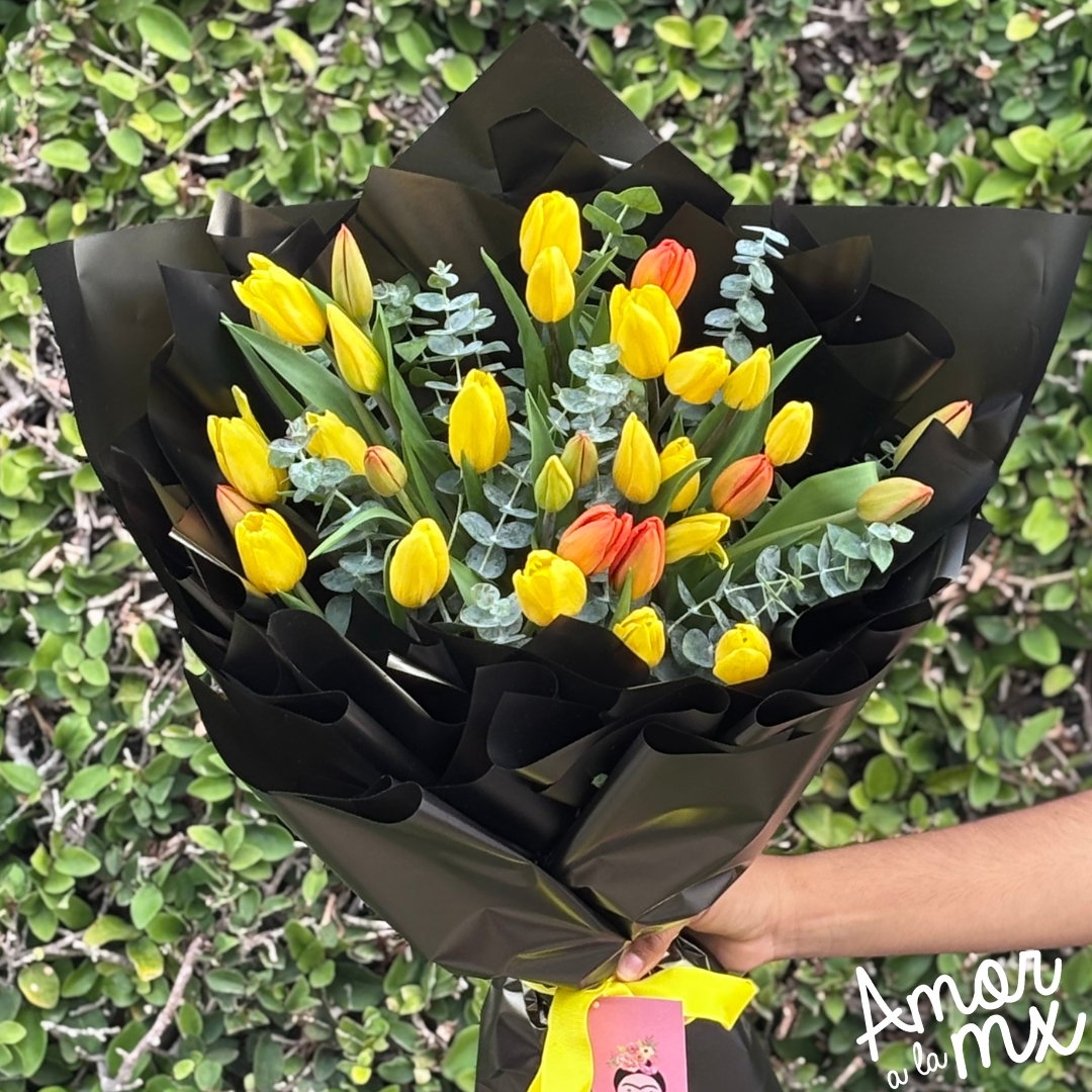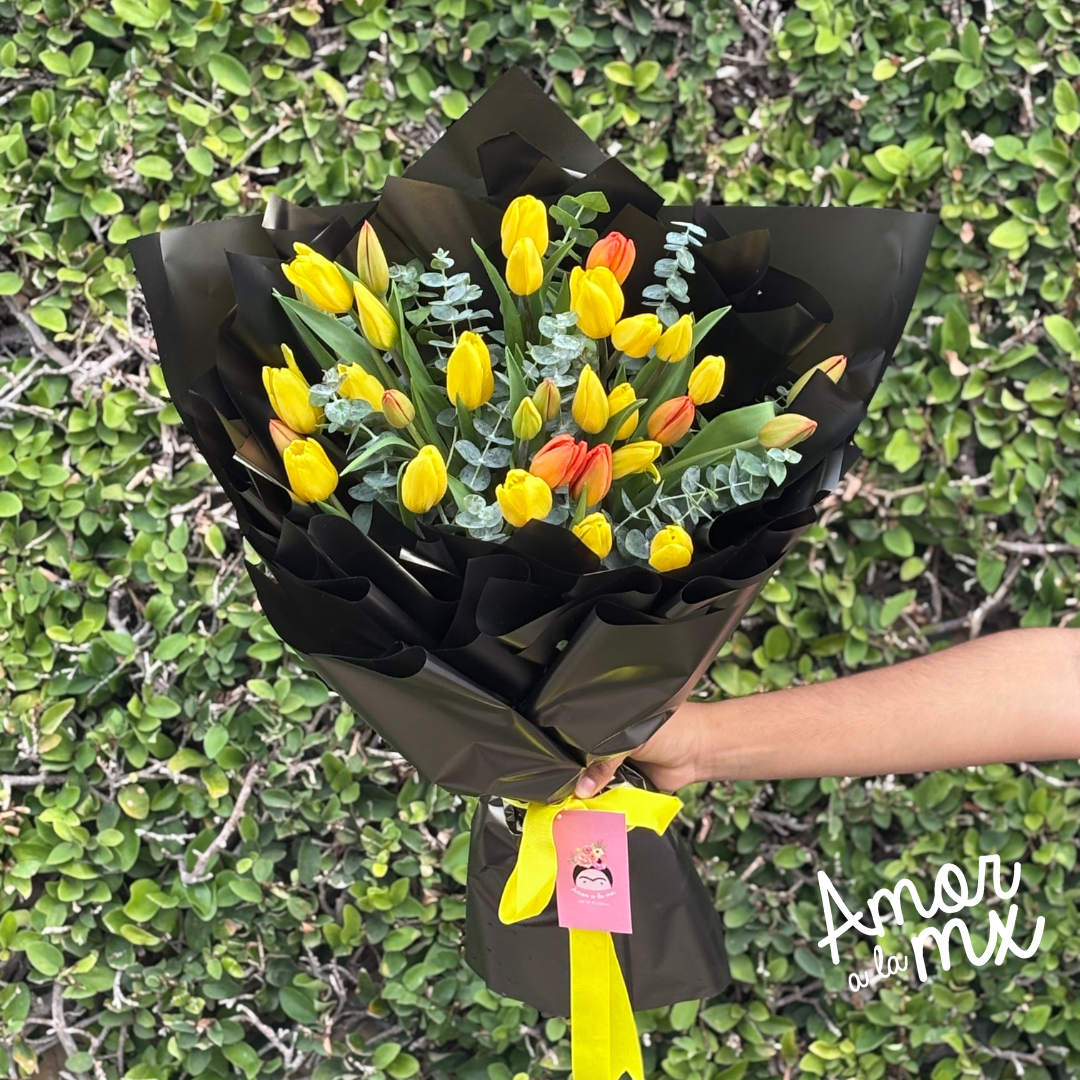 Ramo de 30 tulipanes con follajes disponibles en tienda