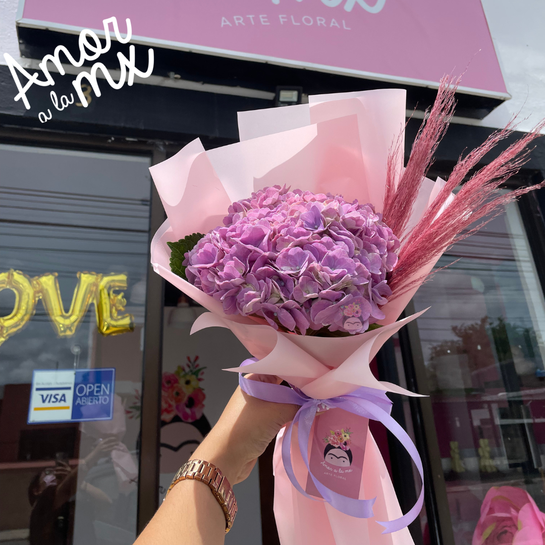 Ramo de 1 hortensia con un toque de preservado