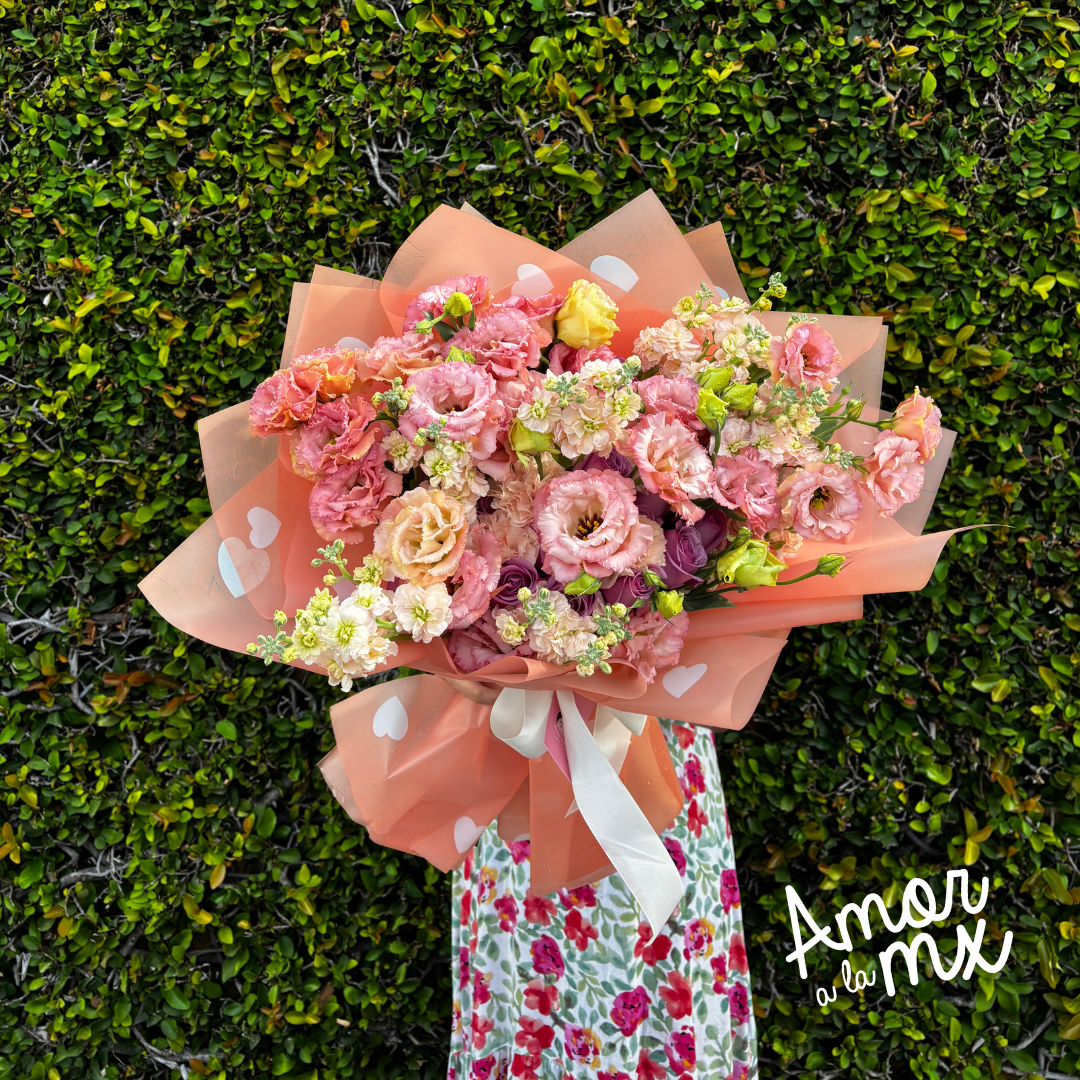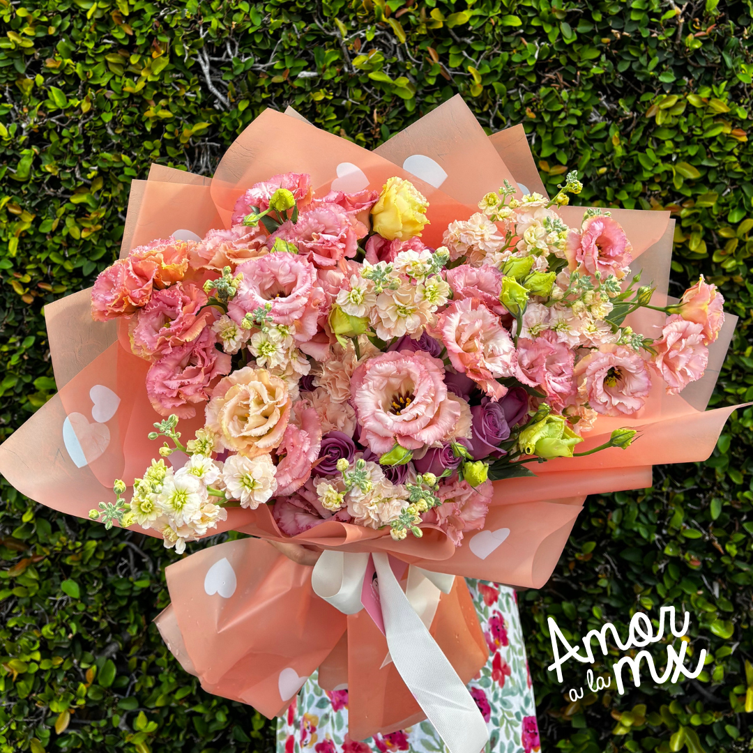 Maxi Ramo con rosas, lisianthus y flores secundarías