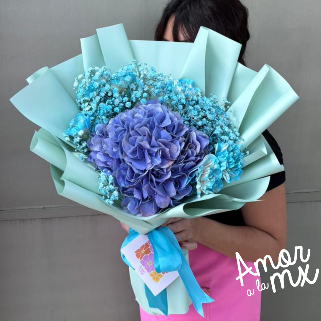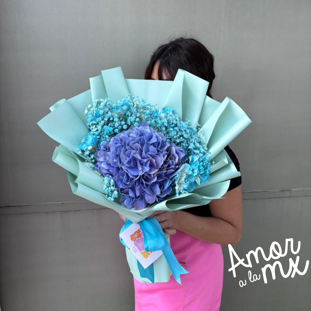 Ramo de 1 hortensia, con flor de acompañamiento